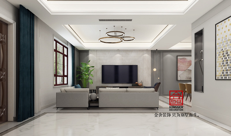 原河名墅600㎡新中式风格装修客厅实景图案例