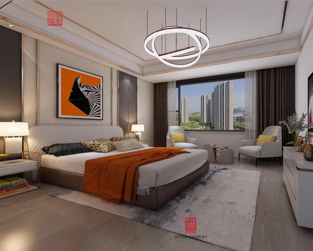 正定自建别墅260平米现代轻奢风格装修-卧室