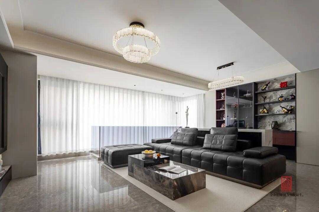 此案例为金舍装饰-德贤公馆212平米港式轻奢风格装修实景。明亮的颜色将整个灰色空间打造的非常具有时尚味道,橘黄的颜色不管在那个地方出现都会如此的耀眼,一份舒适、一份享受、一份幸福,这是设计给人最大的贡献,也是人们对于美的不断追求。
