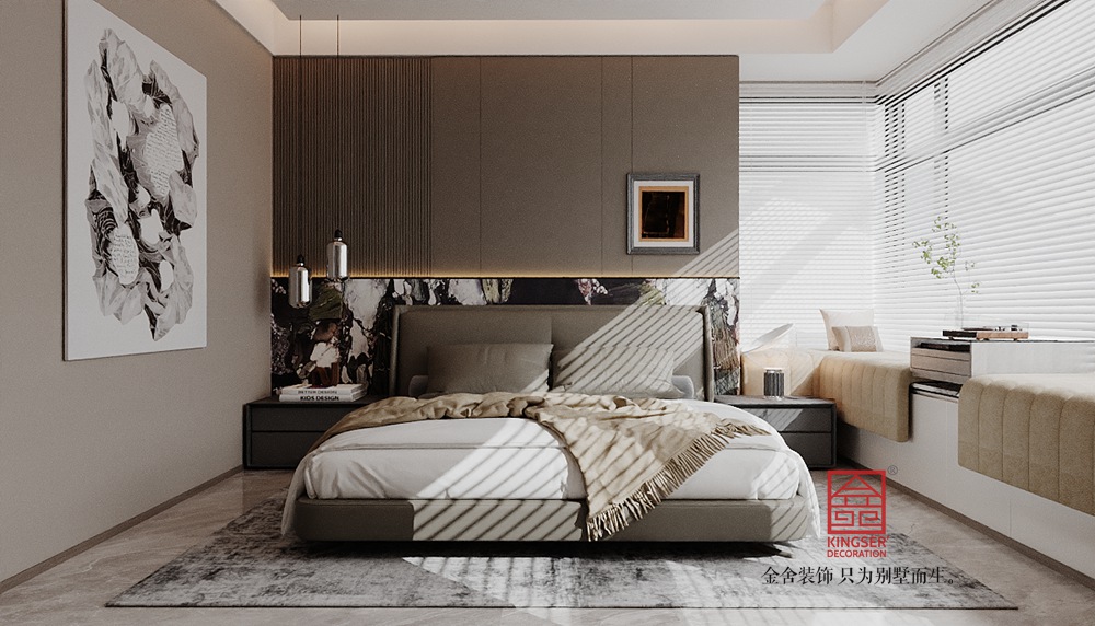 大面积落地窗引入自然光线与户外景致,打破室内外界限。定制收纳墙兼具展示与实用,石材、金属等材质点缀,提升质感。