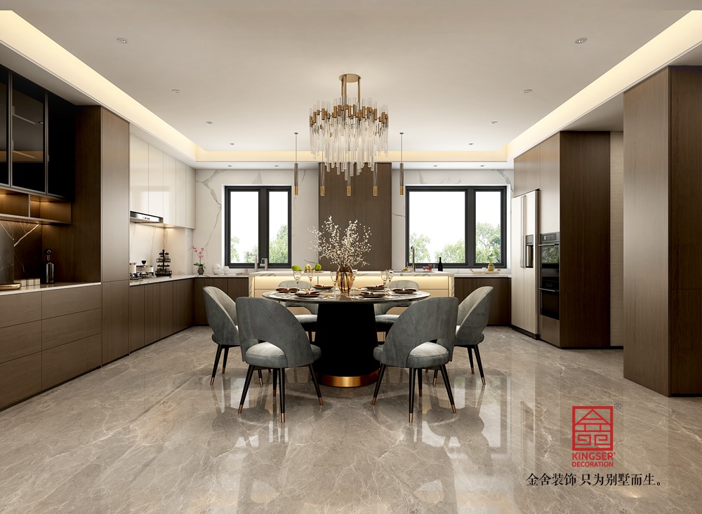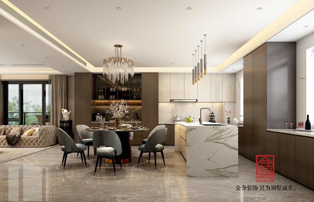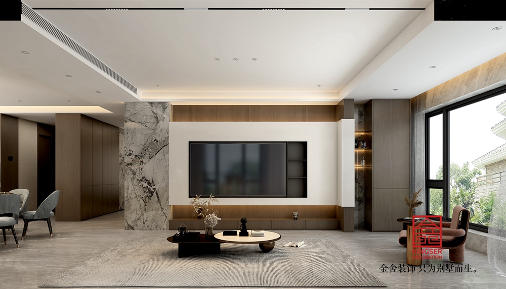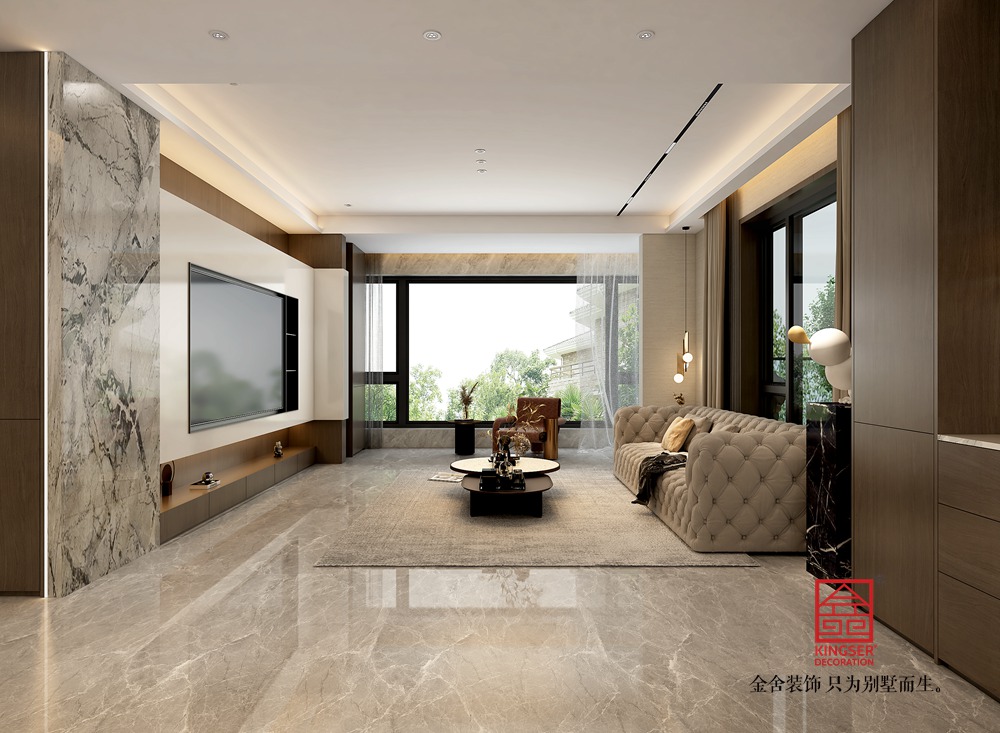 空间布局上,宽敞开阔,各类家具摆放有序,既保证了活动的便利性,又营造出和谐的视觉效果。地面采用大理石材质,其光滑的表面与自然的纹理,为空间增添了奢华质感,同时也易于清洁打理。