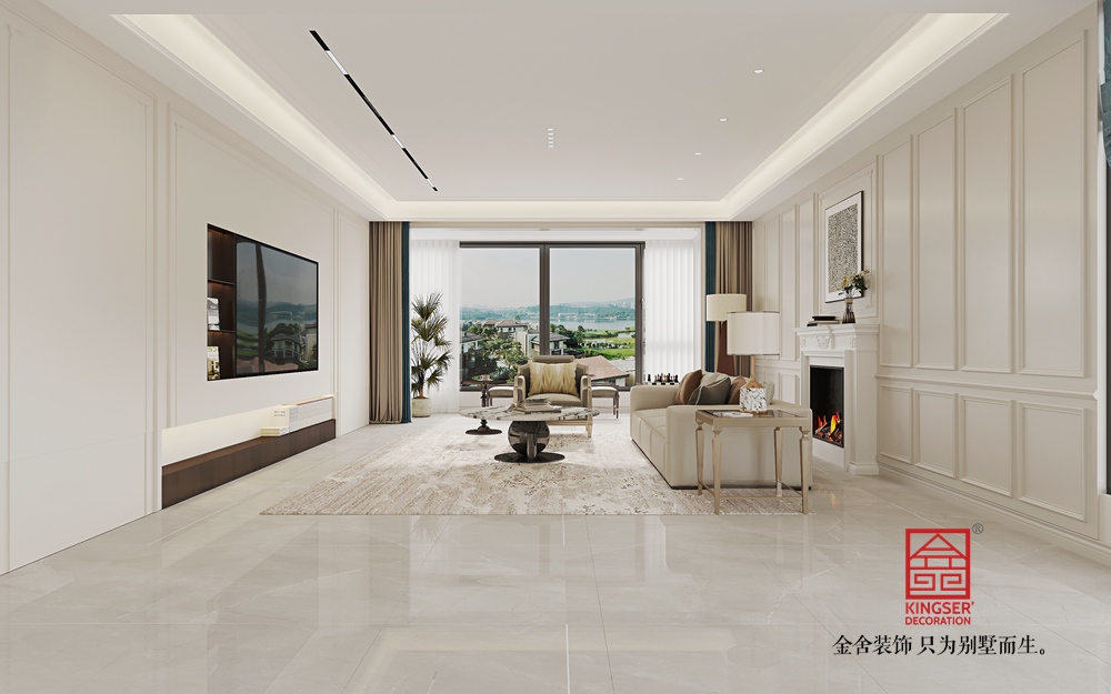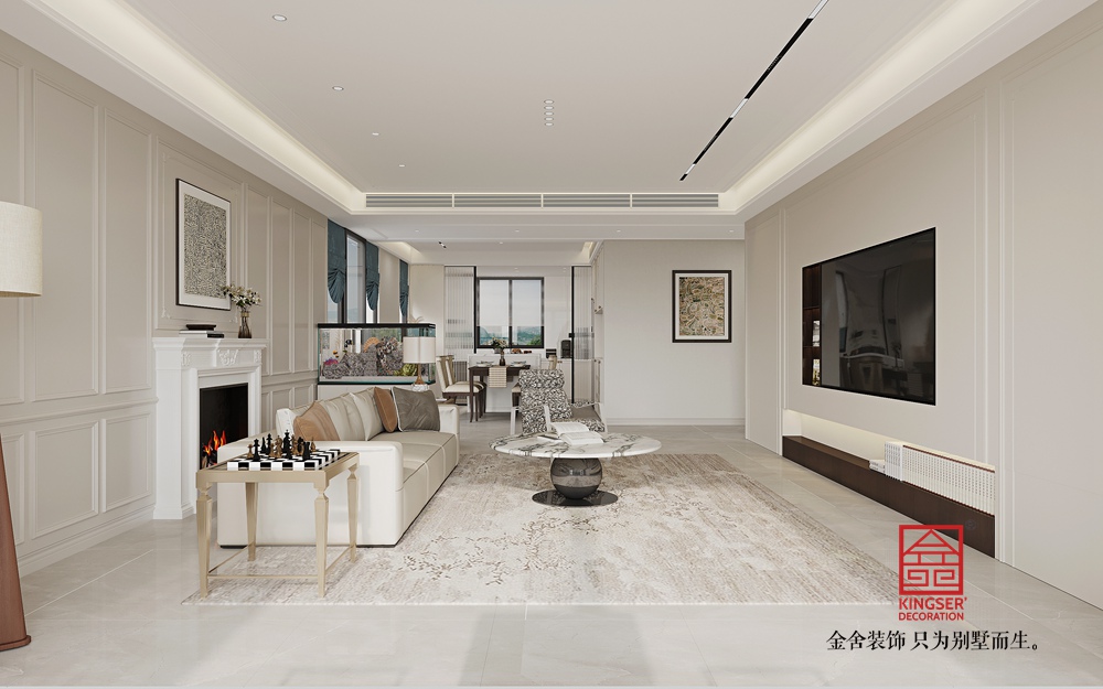 本客厅采用美式轻奢风格设计,力求在经典美式的大气感中,融入轻奢的精致与时尚。