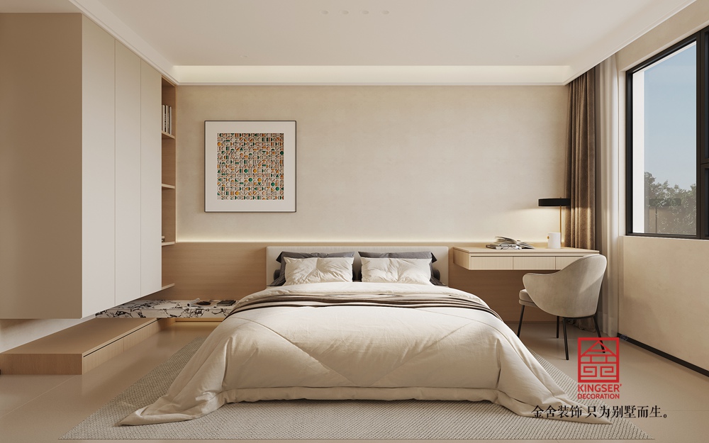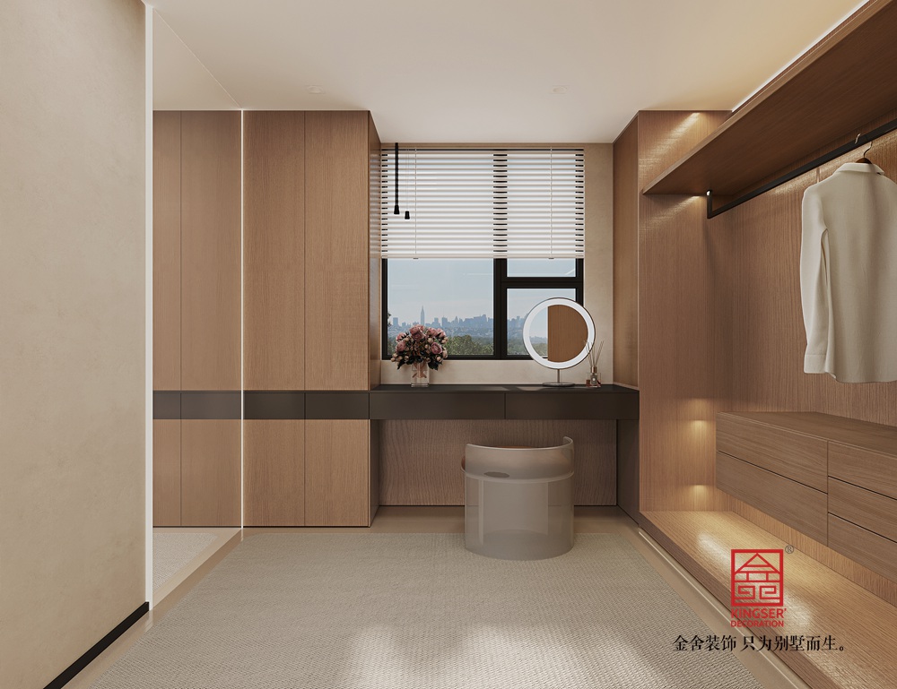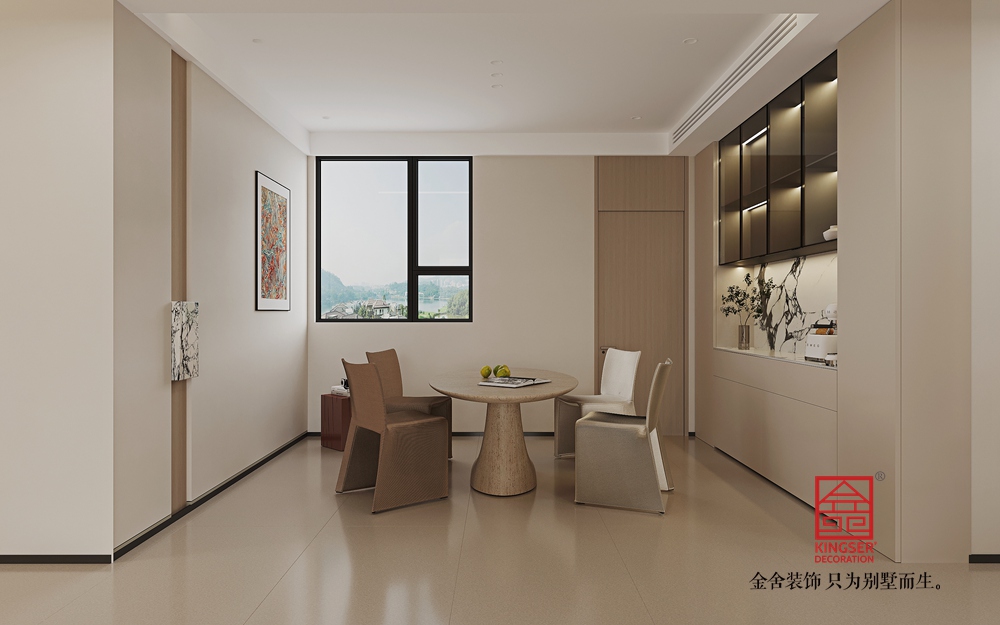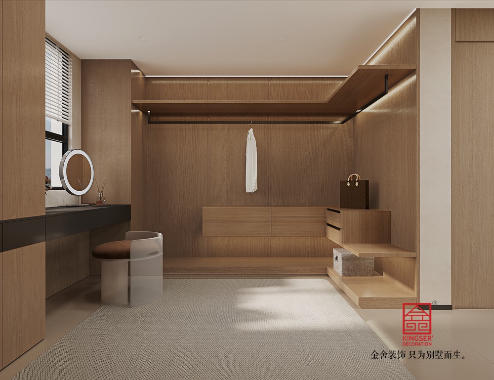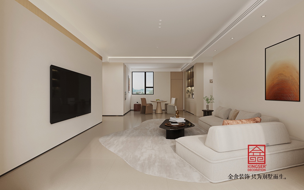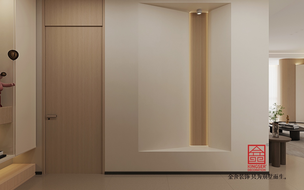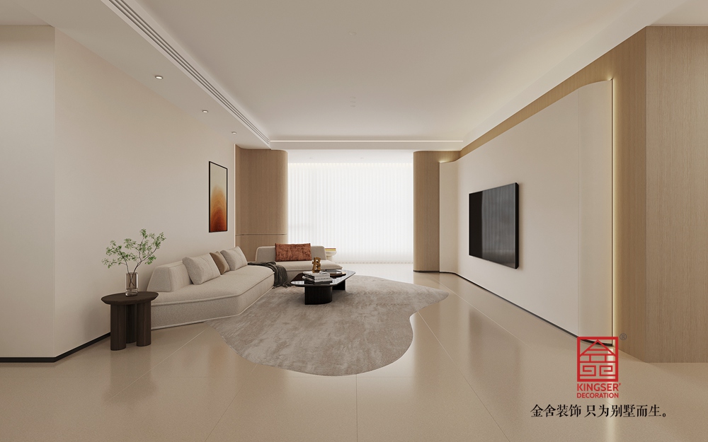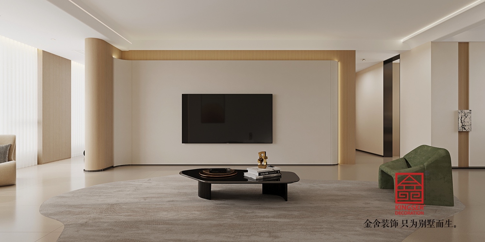 既满足 211 平大户型对空间开阔感与功能性的需求,又以原木的温暖中和极简的冷静,传递出 “回归自然、简约舒适” 的生活态度,让居者在简洁的环境中感受原木带来的自然治愈与品质生活。