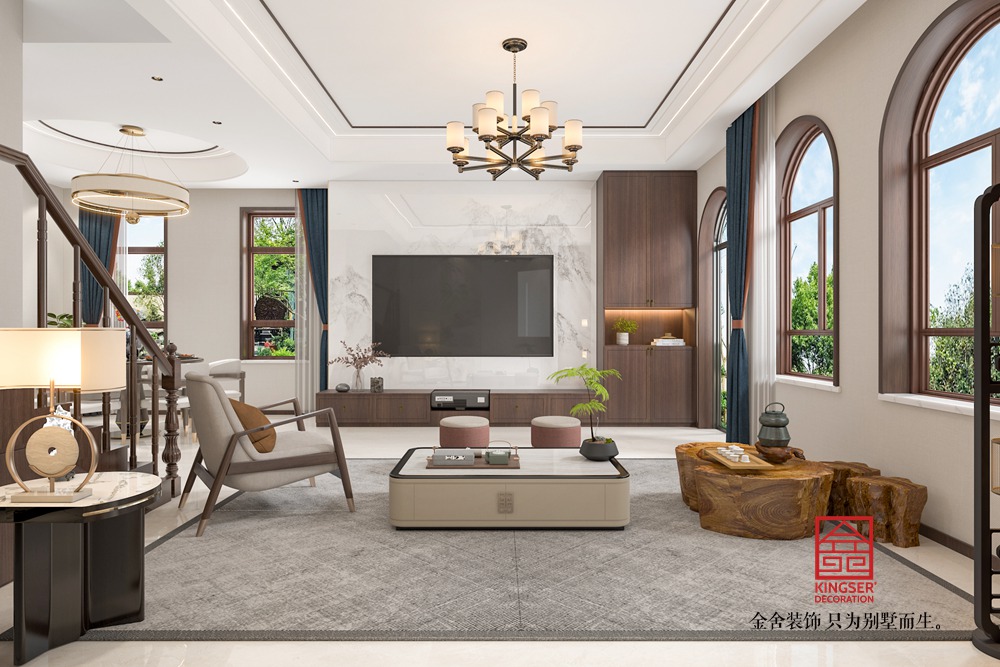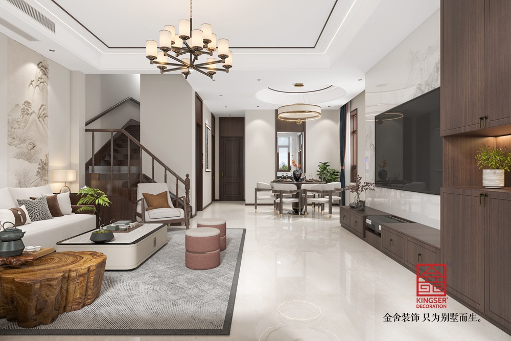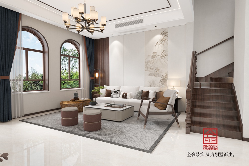 本设计以新中式风格为核心,打造出兼具东方雅致与现代舒适的别墅客厅空间。